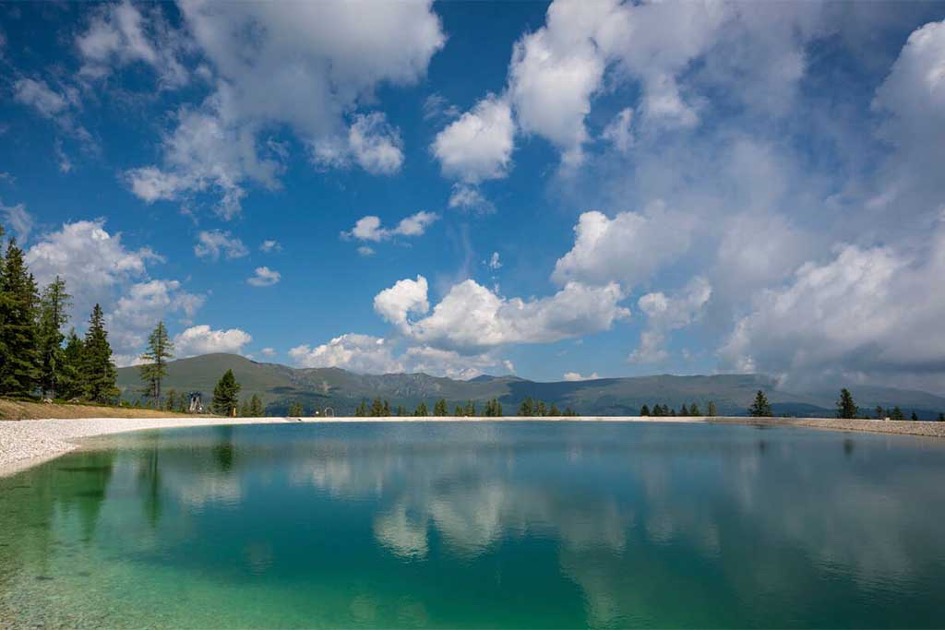 Eine herrliche Wanderstrecke führt Sie zum Speicherteich mit traumhafter Bergkulisse. Sie starten beim großen Parkplatz auf der Hochrindl. Auf der Wanderstrecke kommen sie an einigen bewirtschafteten Almgaststätten vorbei.