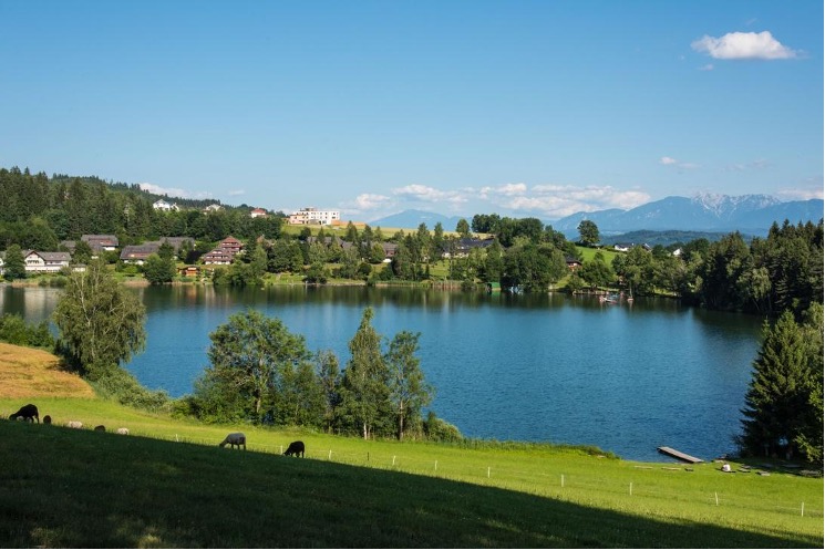 ● Flatschacher See (21 km), 2 km außerhalb der Bezirksstadt Feldkirchen